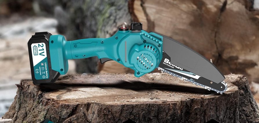 La marca Seesii es conocida por su calidad y durabilidad en el mercado de las mini motosierras a batería. Además de ser popular en ventas de Amazon, ofrece una potencia de 900 voltios, lo que le permite realizar cortes precisos en ramas de hasta 6 pulgadas de diámetro.